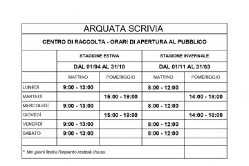 avviso nuovi orari discariche Arquata Scrivia ed Albera Ligure