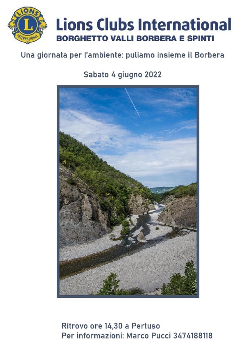 I Lions di Borghetto Valli Borbera e Spinti organizzano per sabato 4 giugno una giornata per l'ambiente.