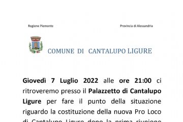 Giovedì 7 Luglio 2022: riunione per costituzione nuova Pro Loco